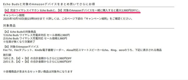 プライムデー限定で開催しているキャンペーンは下記のとおり。