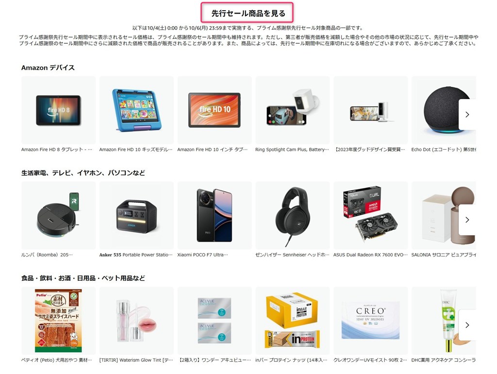 先行セールとは、「プライム感謝祭2025」に先駆けて開催される、プライム会員限定のセールです。