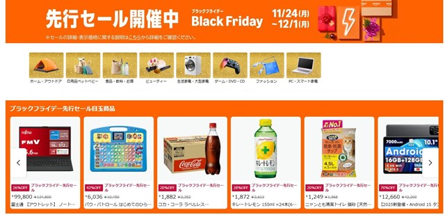 年内最後のAmazonビックセール「ブラックフライデー2025」が11月24日から始まりました。