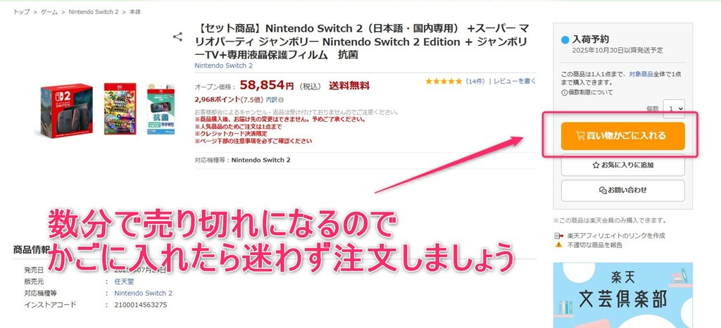 とくに楽天では予約開始から数分で完売するため、販売開始時の動きで結果が大きく変わります。
