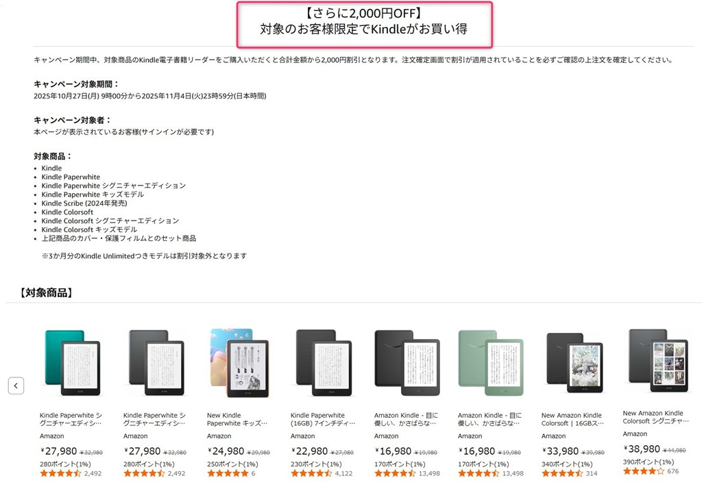 Kindleを買おうか悩んでる人は、ぜひ対象かどうかチェックしてみてください。