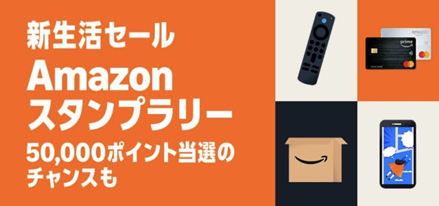 最大50,000ポイントがあたるスタンプラリーは、「Amazon新生活セール」にあわせて開催。