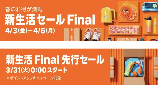 Amazon春のビックセール「新生活セールFinal」が4月3日から開催されます。