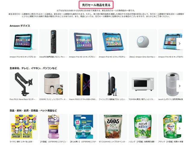 先行セールは、本セールの72時間前から開催され、セール価格は新生活セールFinalと同じです。