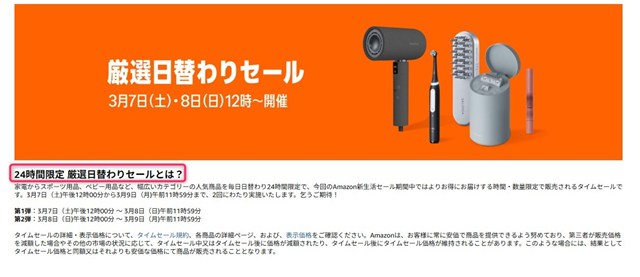 Amazon新生活セールは、24時間限定の日替わりタイムセールが開催されます。