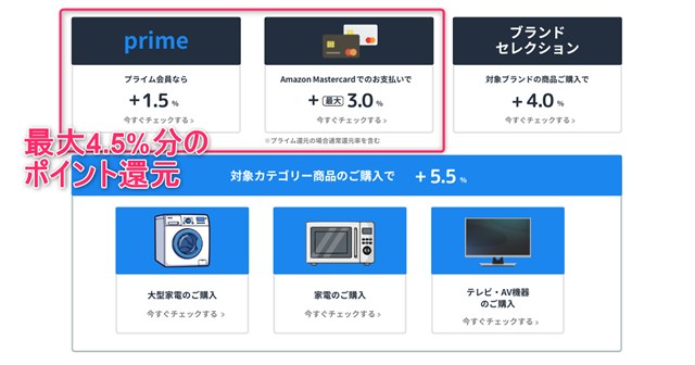最大4.5%分(上限5,000Pまで)もAmazonポイントが還元されます。