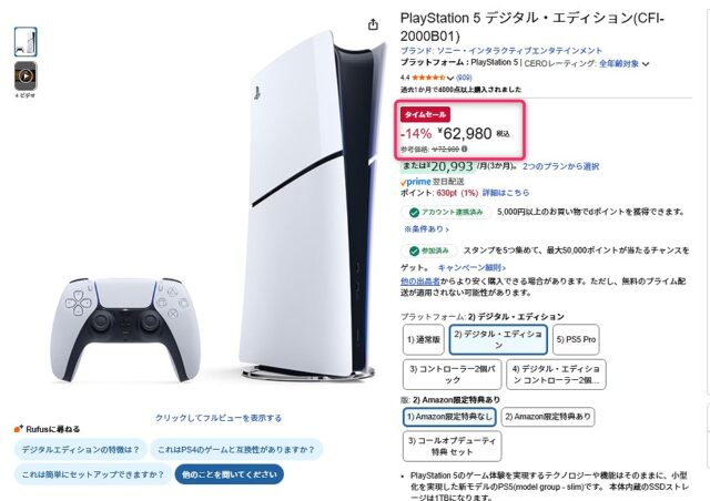 プライム感謝祭セールは10月10日まで開催されますが、PS5に関しては10月6日以降に値段が戻る可能性も大。