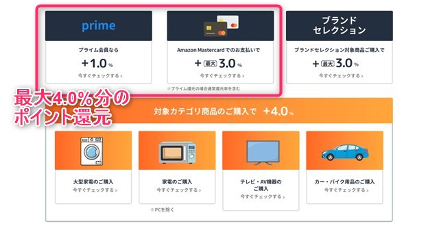 最大4.0%分(上限6,000Pまで)もAmazonポイントが還元されます。