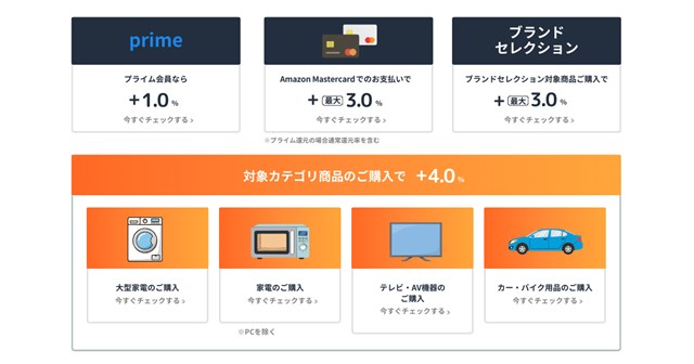 プライム会員であれば、セールでのポイント還元が+1.0%アップ。