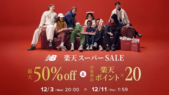 ニューバランス公式 楽天市場店では先行セールから使用できる50%クーポンが配布されています。