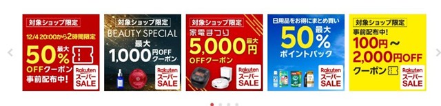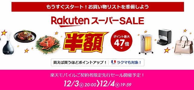 先行セールは楽天スーパーSALE開催の24時間前の12/3にスタート。