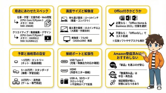 本記事では、ビジネスユーザーや一般の方が快適に使えるPCを厳選して紹介しています。クリエーター向けやゲーミングPCは含まれていませんので、あらかじめご了承ください。